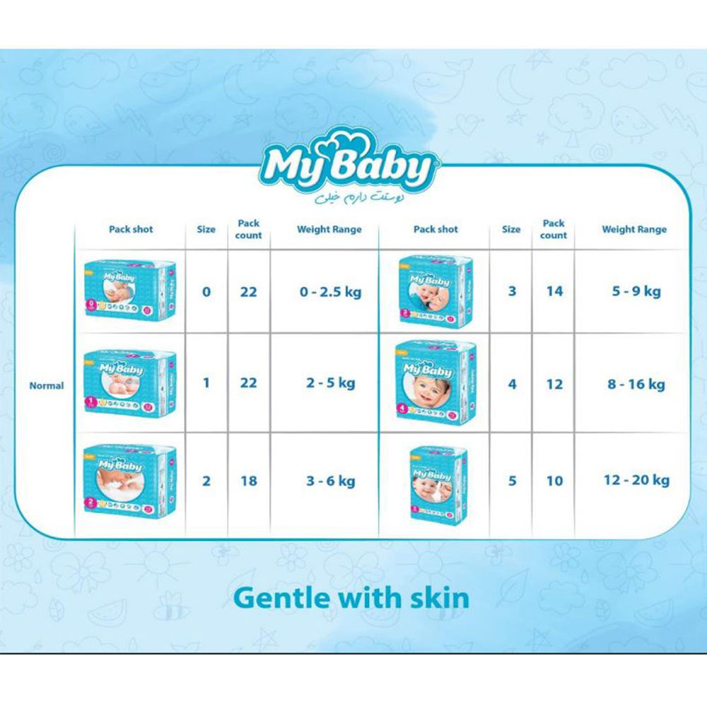 پوشک مای بیبی آبی سری مهربان با پوست سایز 0 بسته 22 عددی