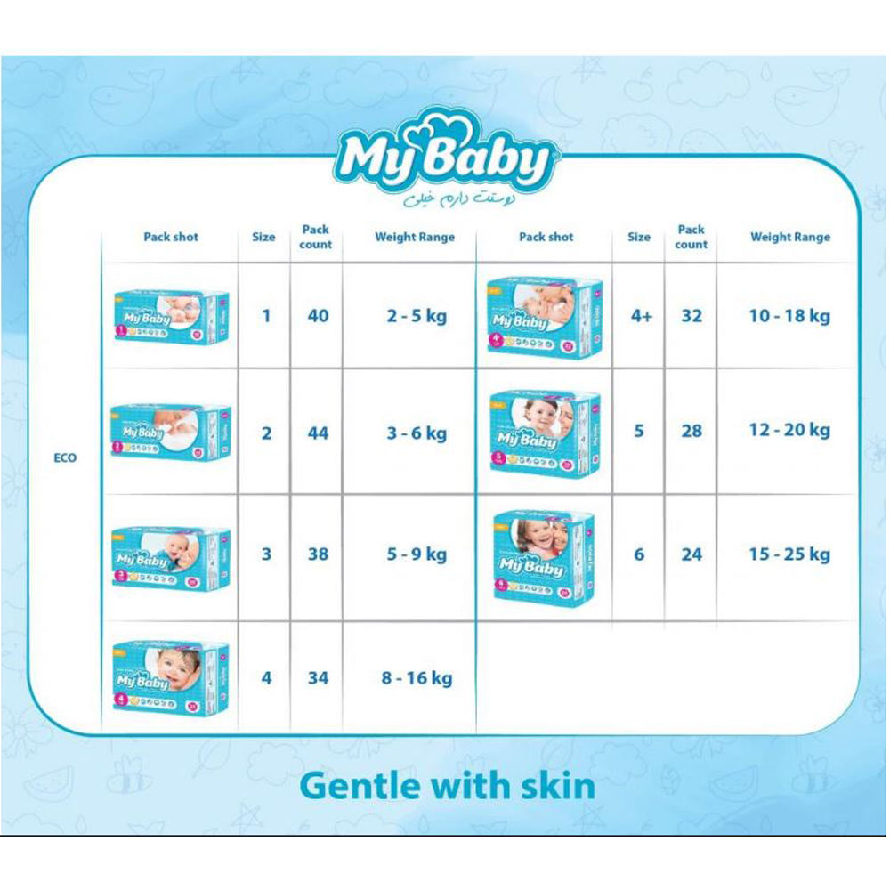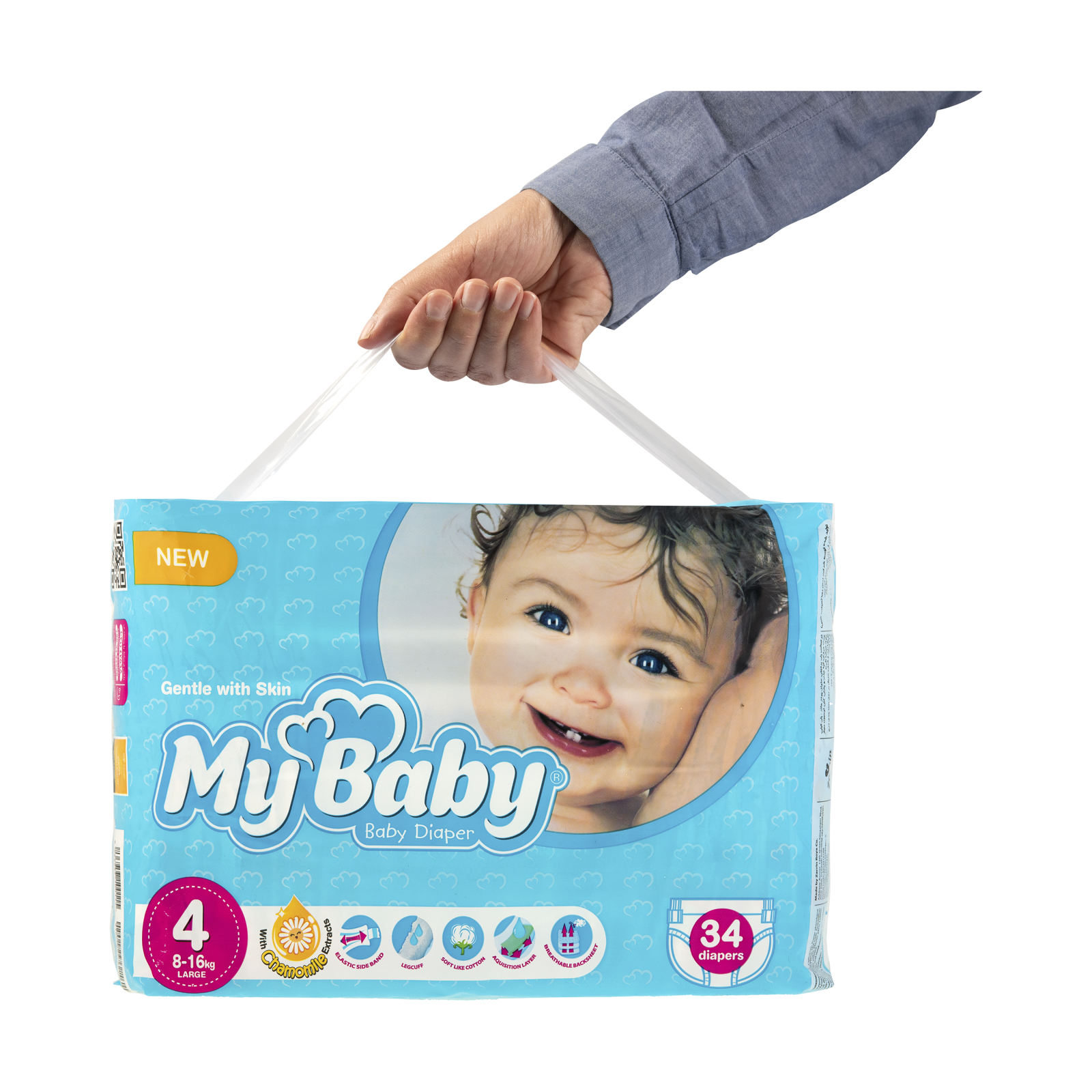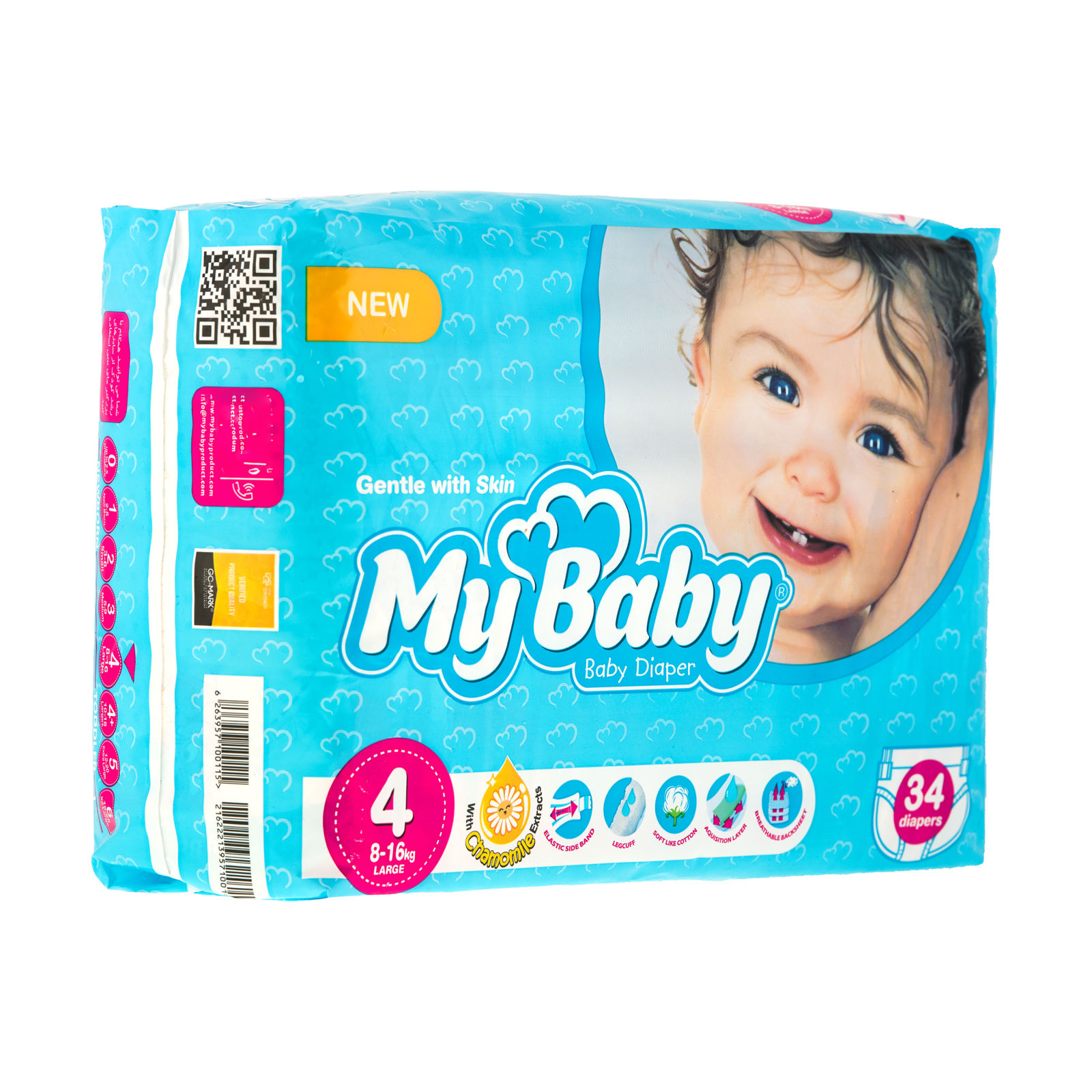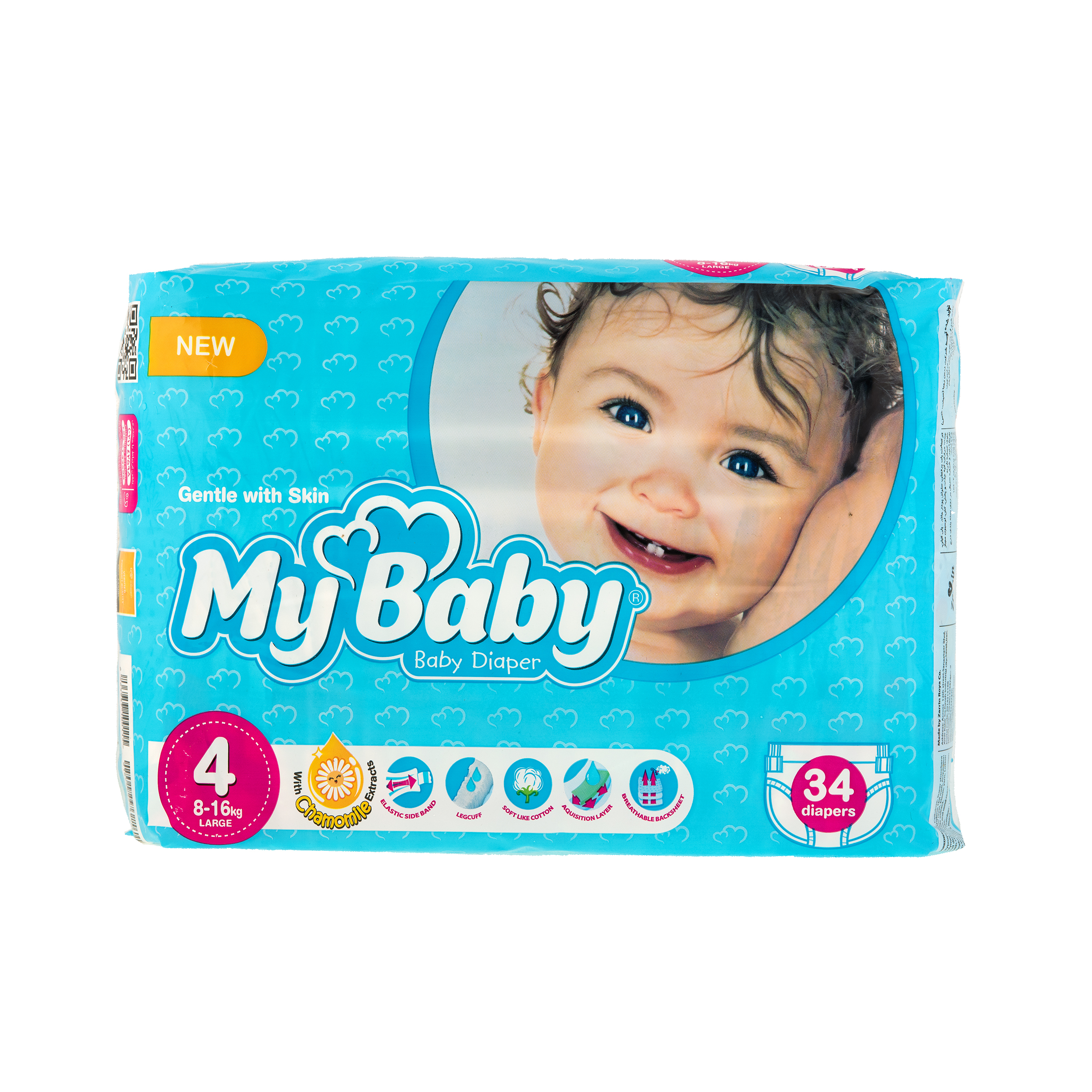 پوشک مای بیبی آبی سری مهربان با پوست سایز 4 بسته 34 عددی